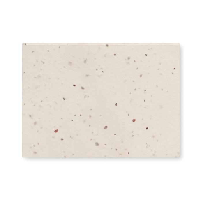 Découvrez le GROW ME - Bloc notes couverture à planter, l'outil idéal pour vos campagnes marketing et événements. Ce bloc-notes innovant offre 50 feuilles + 25 notes repositionnables en papier à base d'herbe, accompagnées de 3 blocs de marqueurs, le tout sous une couverture souple en papier de culture. Écrivez, collez et organisez vos idées comme sur un Post-it classique, sans gaspillage.