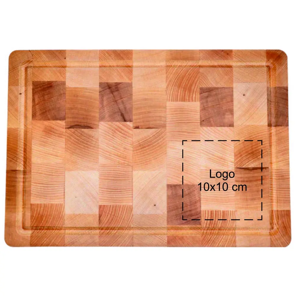 Découvrez notre billot en bois de hêtre de haute qualité, un cadeau d'entreprise idéal pour personnaliser avec votre logo. Avec ses dimensions pratiques de 36x26 cm, il offre un espace généreux pour découper viandes, légumes ou pains lors d'événements ou en cuisine professionnelle. Les poignées intégrées facilitent son transport, le rendant parfait pour les stands de dégustation ou les cadeaux promotionnels.