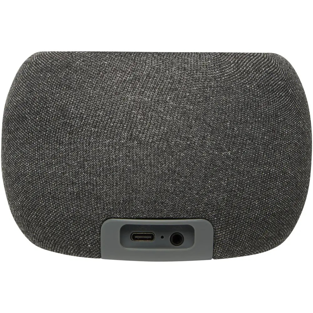 Fabriqué en bambou et tissu recyclé PET, ce produit éco-responsable met en valeur votre engagement RSE. La batterie de 1 200 mAh offre plus de 6 heures d'autonomie, avec contrôles musicaux et micro intégrés pour des appels mains-libres. Portée Bluetooth® jusqu'à 10 m, il s'adapte parfaitement à vos campagnes marketing.