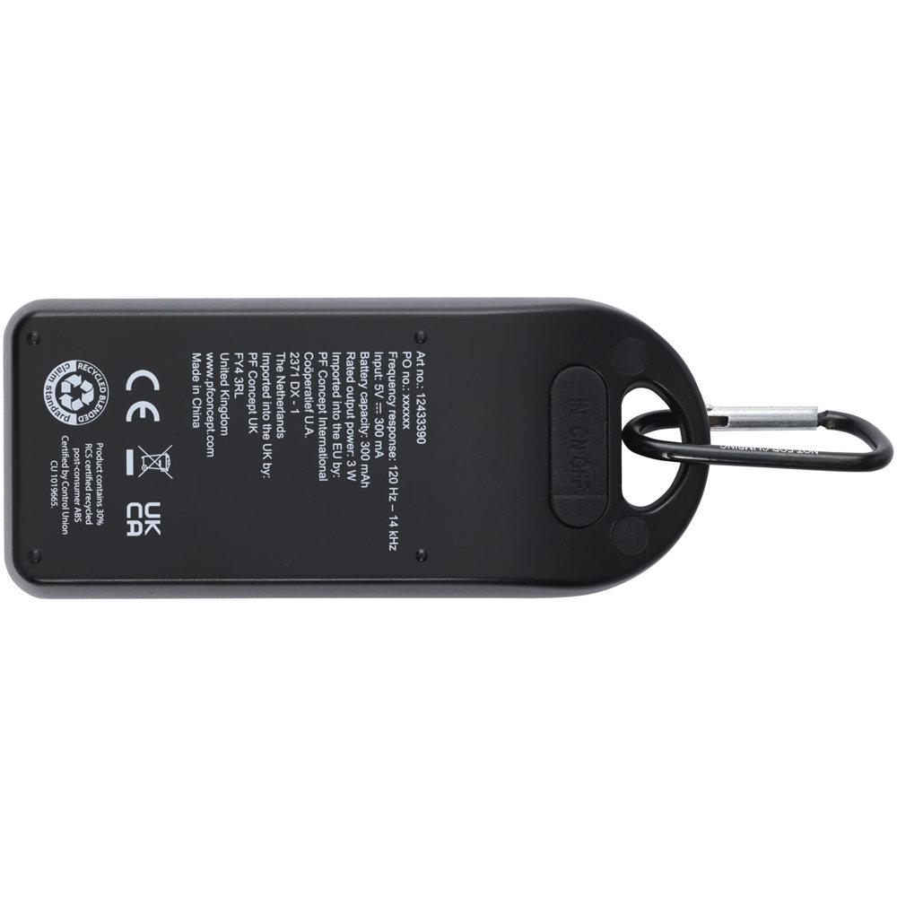 Sa batterie Li-ion de 300 mAh offre 1,5 heure de lecture à volume maximum, avec une recharge rapide en 1,5 heure via câble USB-A vers Type-C. Fournie avec manuel, mousqueton et emballage en papier Kraft 100 % recyclé, c'est le cadeau d'entreprise parfait pour fidéliser vos prospects et booster votre visibilité.