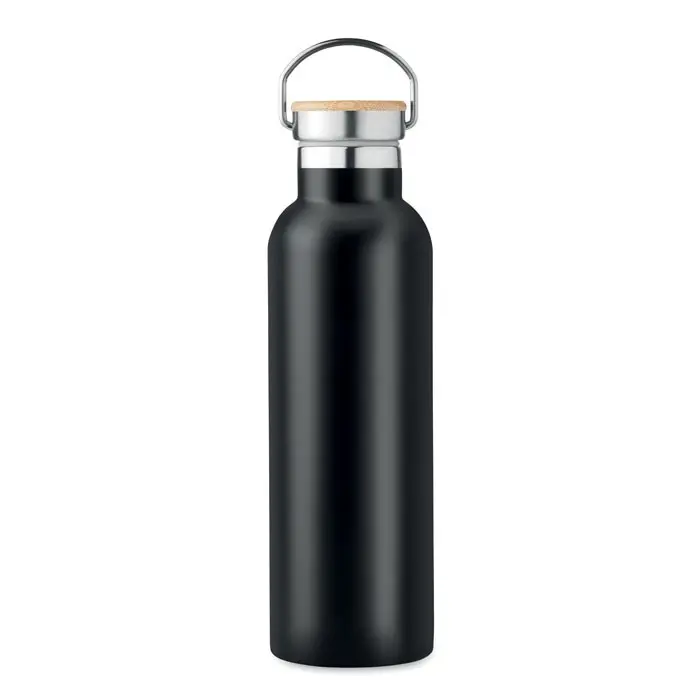 Découvrez la bouteille double paroi Helsinki Med de 750 ml, idéale pour vos campagnes marketing et événements d'entreprise. Fabriquée en acier inoxydable robuste avec un couvercle en bambou naturel et une poignée pratique, elle offre une isolation sous vide qui maintient vos boissons au frais ou au chaud pendant des heures. Anti-fuite et facile à transporter, elle est parfaite pour des cadeaux promotionnels personnalisés avec votre logo.