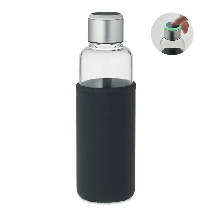 Découvrez la bouteille à rappel INDER en verre borosilicate, un accessoire innovant pour promouvoir l'hydratation au quotidien. Fabriquée en verre résistant, elle intègre un capteur qui allume une lumière toutes les heures pour rappeler de boire, favorisant ainsi une meilleure santé et une productivité accrue chez vos équipes ou clients.