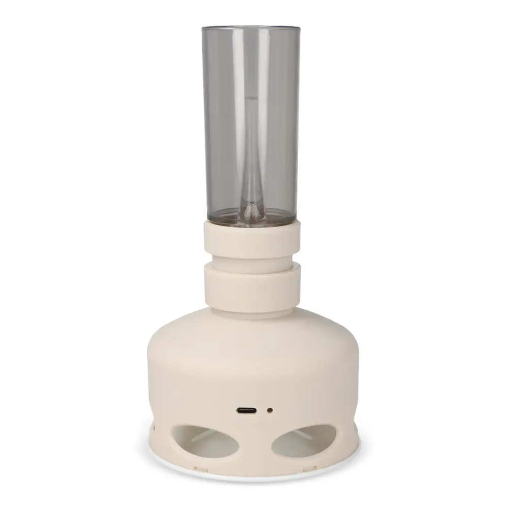 Grâce à son capteur de souffle, éteignez-la simplement en soufflant sous le verre, comme une bougie d'antan – un geste ludique qui surprend et engage vos clients. Avec un éclairage LED dimmable, économe et doux pour les yeux, elle s'adapte à tous les usages : intérieur, extérieur ou en déplacement.