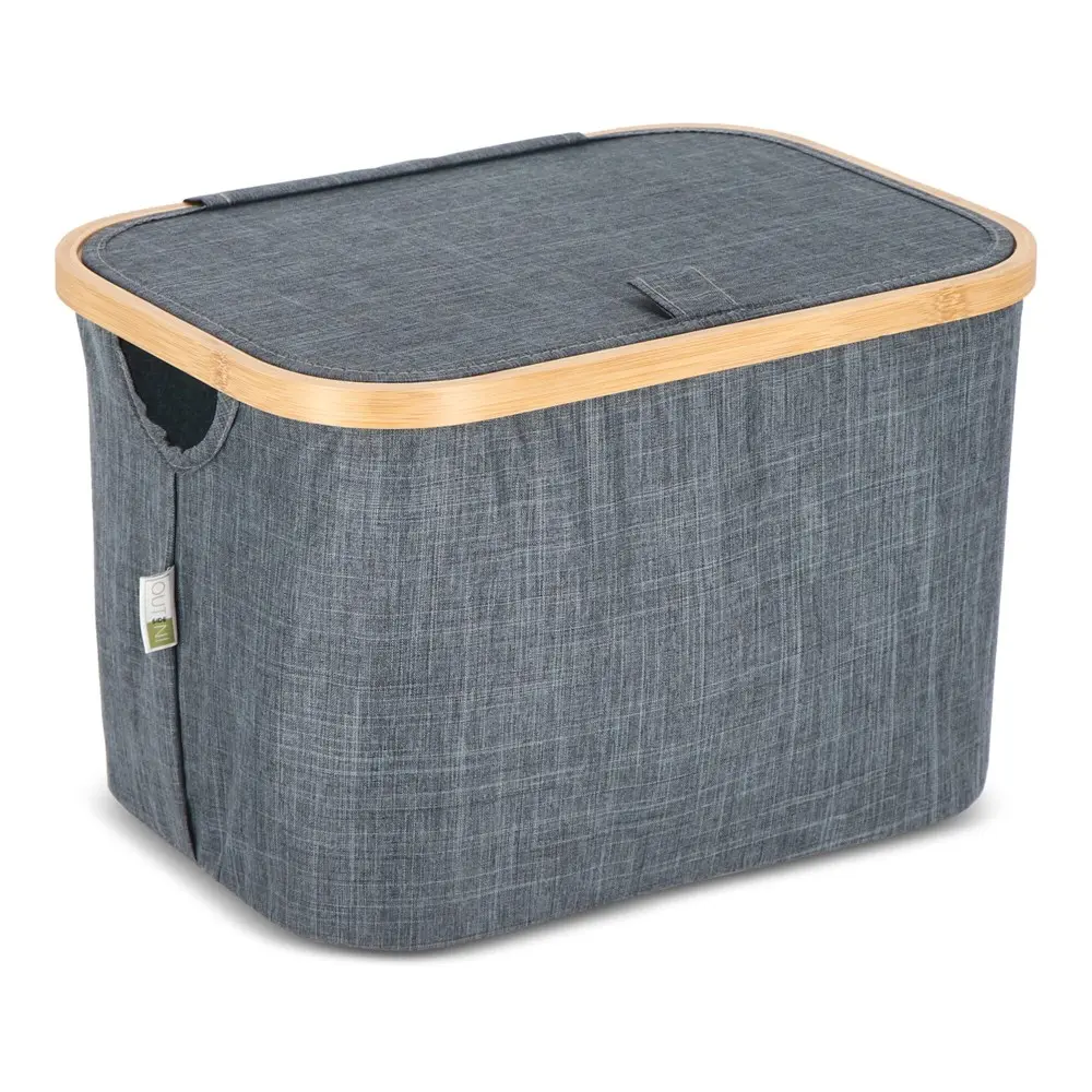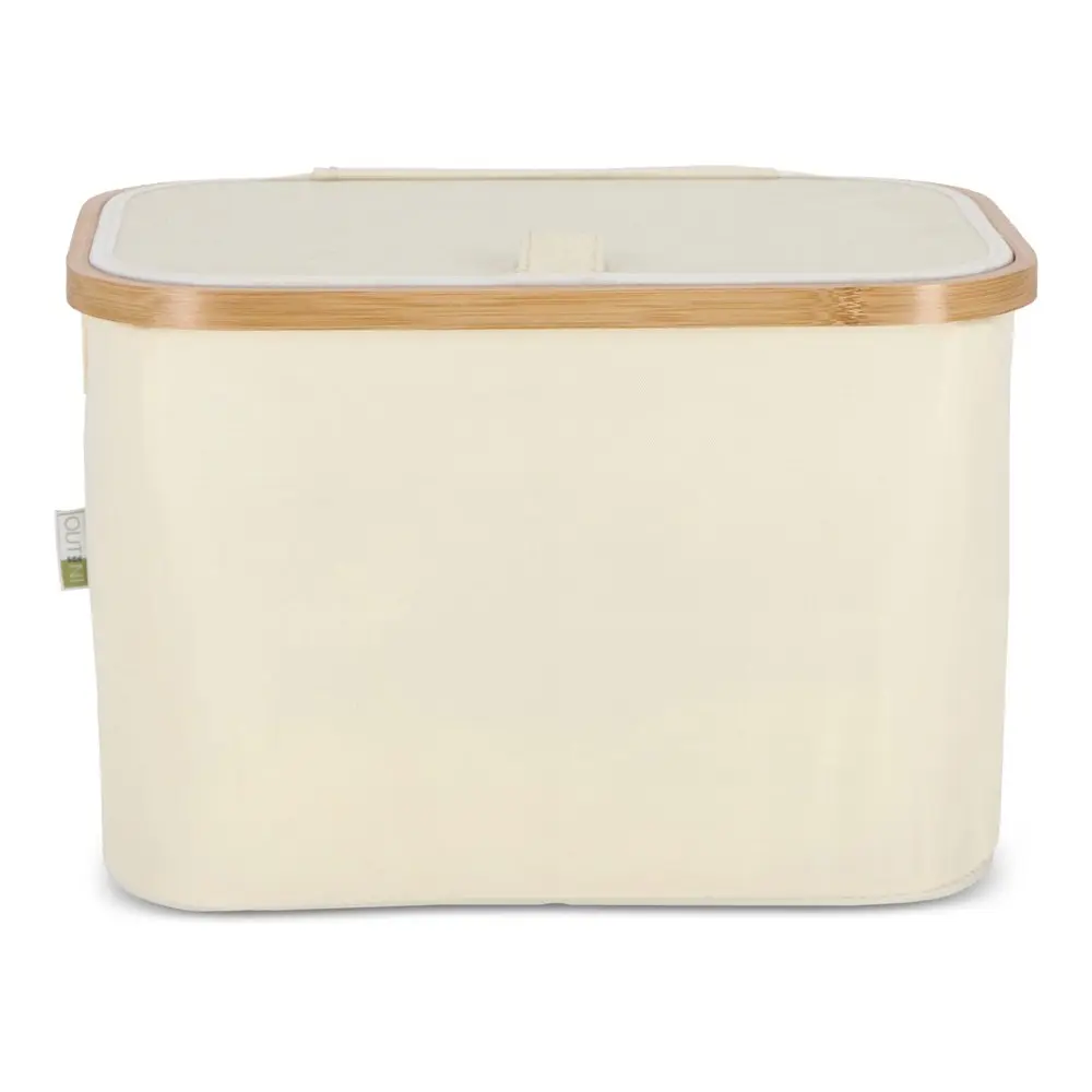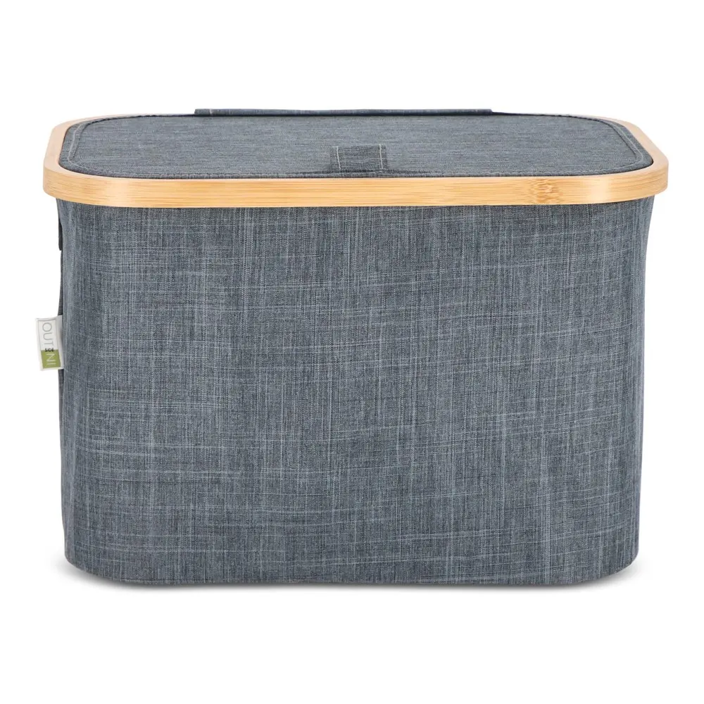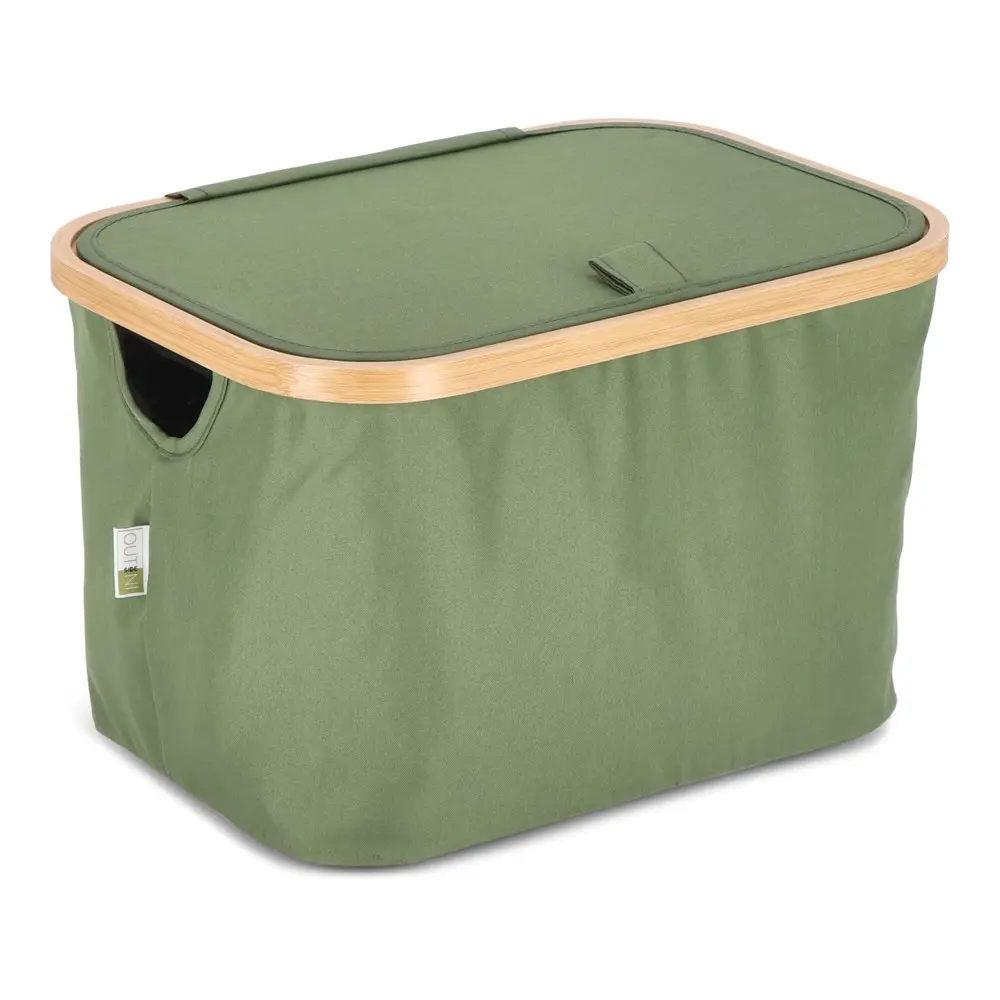 Doté d'un couvercle pratique, le panier est à la fois pliable et empilable, optimisant l'espace de stockage de manière astucieuse. Ses coins renforcés par des supports textiles fixés via bande Velcro au cadre en bambou permettent un pliage et un dépliage rapides, rendant son utilisation fluide et intuitive. Dimensions compactes de 38 x 26 x 25 cm : il s'adapte facilement à tout environnement, des bureaux aux événements, sans encombrer.