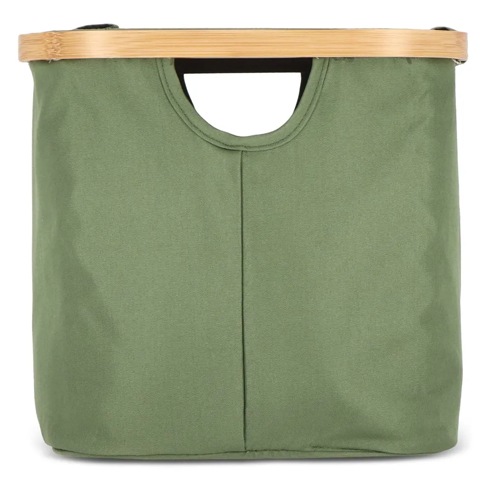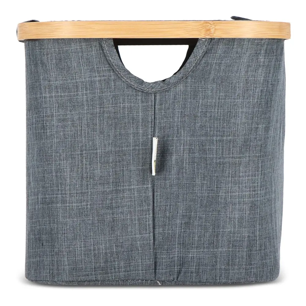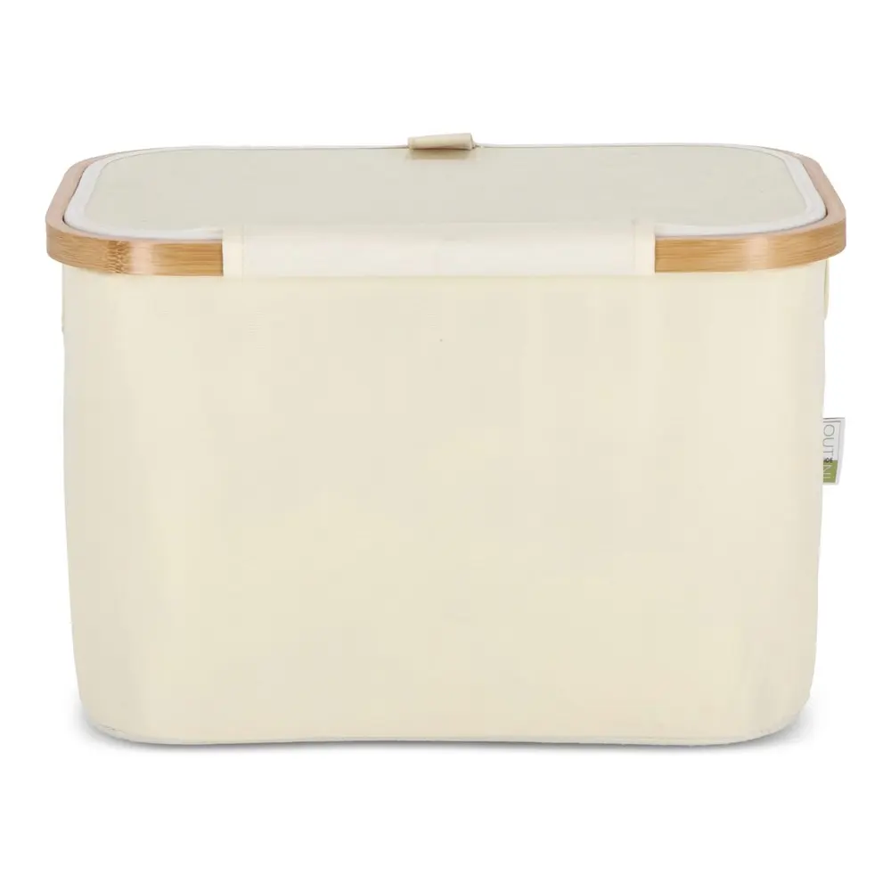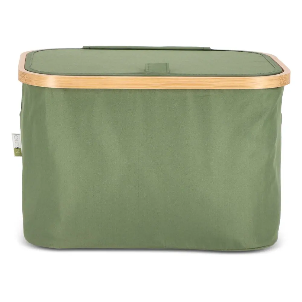 Doté d'un couvercle pratique, le panier est à la fois pliable et empilable, optimisant l'espace de stockage de manière astucieuse. Ses coins renforcés par des supports textiles fixés via bande Velcro au cadre en bambou permettent un pliage et un dépliage rapides, rendant son utilisation fluide et intuitive. Dimensions compactes de 38 x 26 x 25 cm : il s'adapte facilement à tout environnement, des bureaux aux événements, sans encombrer.