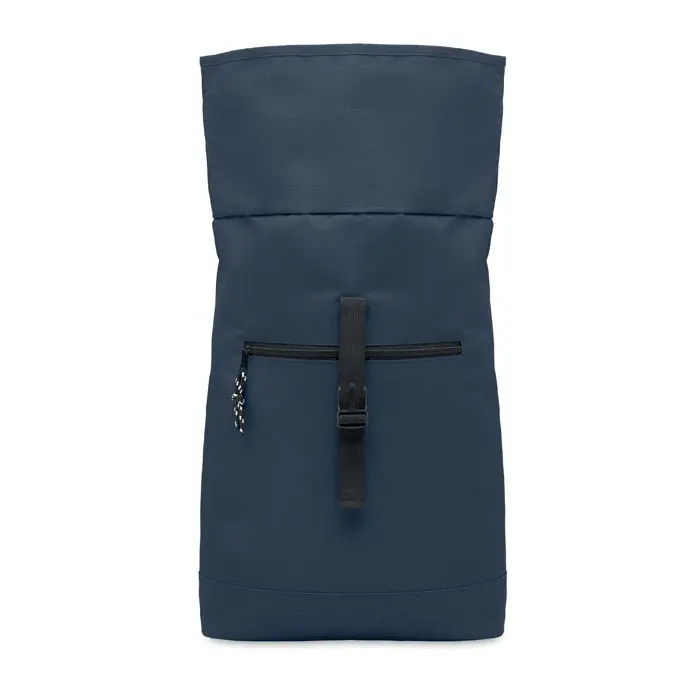 Ce sac à dos enroulable est conçu pour accueillir un ordinateur portable de 15 pouces. Fabriqué en polyester 600D résistant, il offre un dos rembourré pour un port confortable et un renforcement à la base pour une durabilité accrue. Une poche frontale zippée permet un accès rapide aux accessoires essentiels, tandis que la doublure en 210D assure une protection intérieure optimale. Le matériau principal en PET recyclé souligne un engagement écologique.