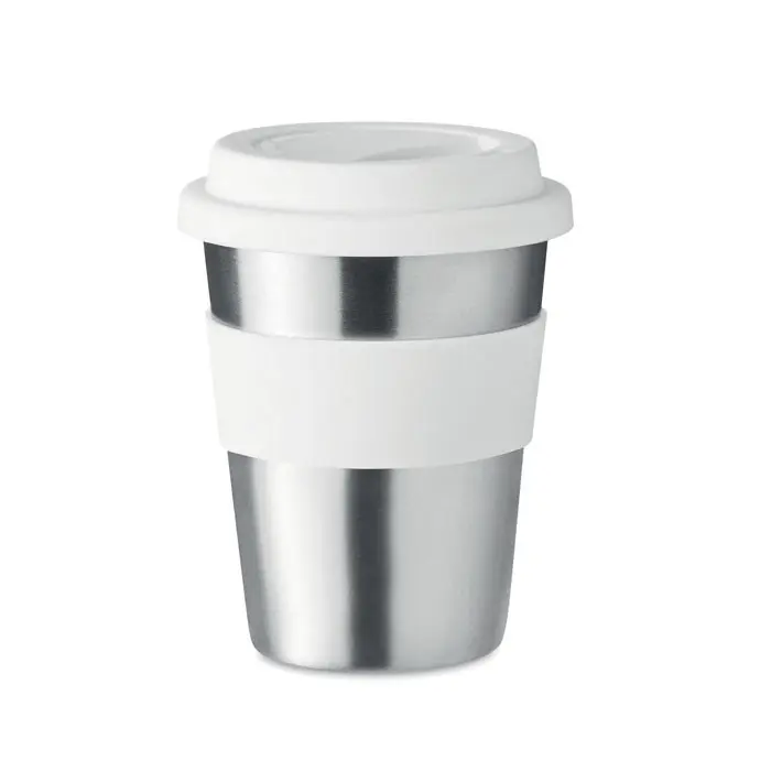 Découvrez ce gobelet à paroi simple en acier inoxydable, doté d'un couvercle et d'une poignée en silicone pour une prise en main confortable. Avec une capacité de 350 ml, il est idéal pour les boissons chaudes ou froides lors de vos manifestations professionnelles.