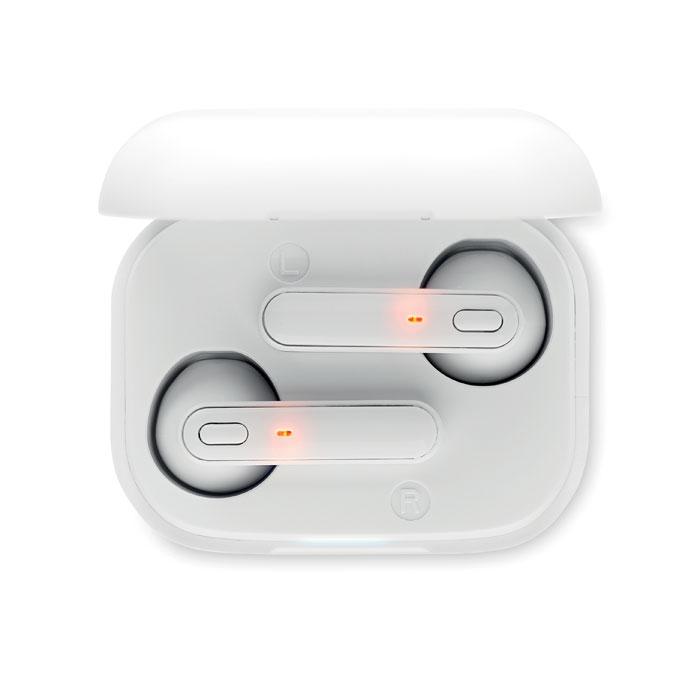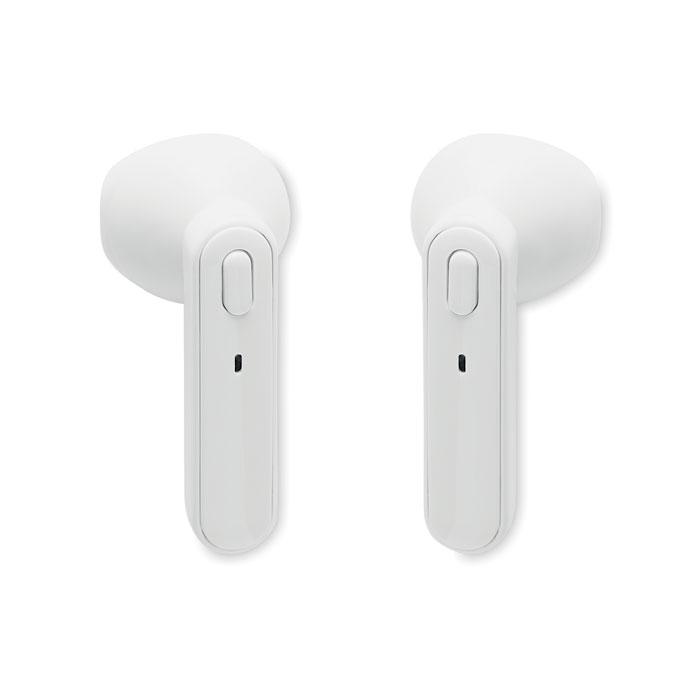 L'appairage automatique simplifie l'utilisation, tandis que la station de chargement de 185 mAh avec câble micro USB assure une recharge rapide et pratique. Fabriqués en ABS recyclé, ces écouteurs allient qualité, durabilité et engagement écologique, parfaits pour une image de marque responsable.