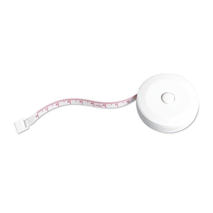 Mètre-ruban 1m JEN : un outil promotionnel compact et pratique, fabriqué en ABS robuste avec une forme arrondie ergonomique et un bouton poussoir pour un déroulement fluide du ruban de 1 mètre.
