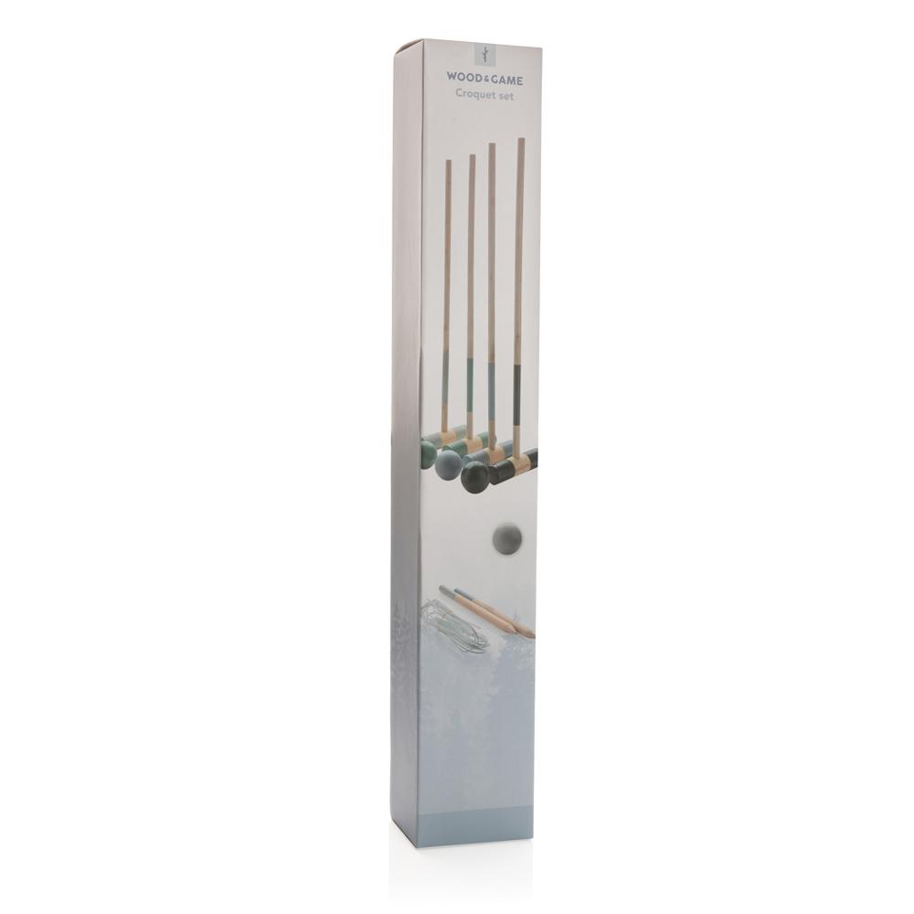 Offrez un jeu de croquet en bois personnalisable, idéal pour vos événements d'entreprise, team buildings ou cadeaux promotionnels. Ce set complet pour 4 joueurs inclut 4 maillets, 4 boules et 10 arceaux en métal, le tout rangé dans une pratique pochette en coton avec règles du jeu.
