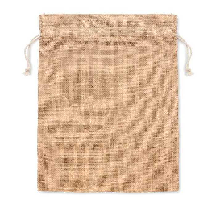Découvrez ce sac cadeau de taille moyenne, fabriqué en jute naturel avec un cordon pratique. Ses dimensions approximatives de 25 x 32 cm en font un format idéal pour transporter de petits objets ou offrir des goodies promotionnels. Certifié OEKO-TEX® STANDARD 100, il garantit une qualité sans substances nocives, pour une utilisation sereine auprès de vos clients.