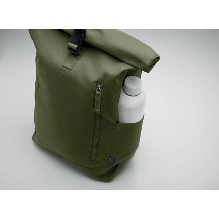 Découvrez ce sac à dos enroulable ultra-pratique, conçu en coton recyclé (80 %) et polyester recyclé (20 %) de 390 gr/m² pour une robustesse optimale. Équipé d'une fermeture auto-agrippante facile d'utilisation et d'une poche frontale zippée, il se range compactement une fois vide, idéal pour transporter ordinateurs, documents ou effets personnels lors de déplacements ou d'événements.