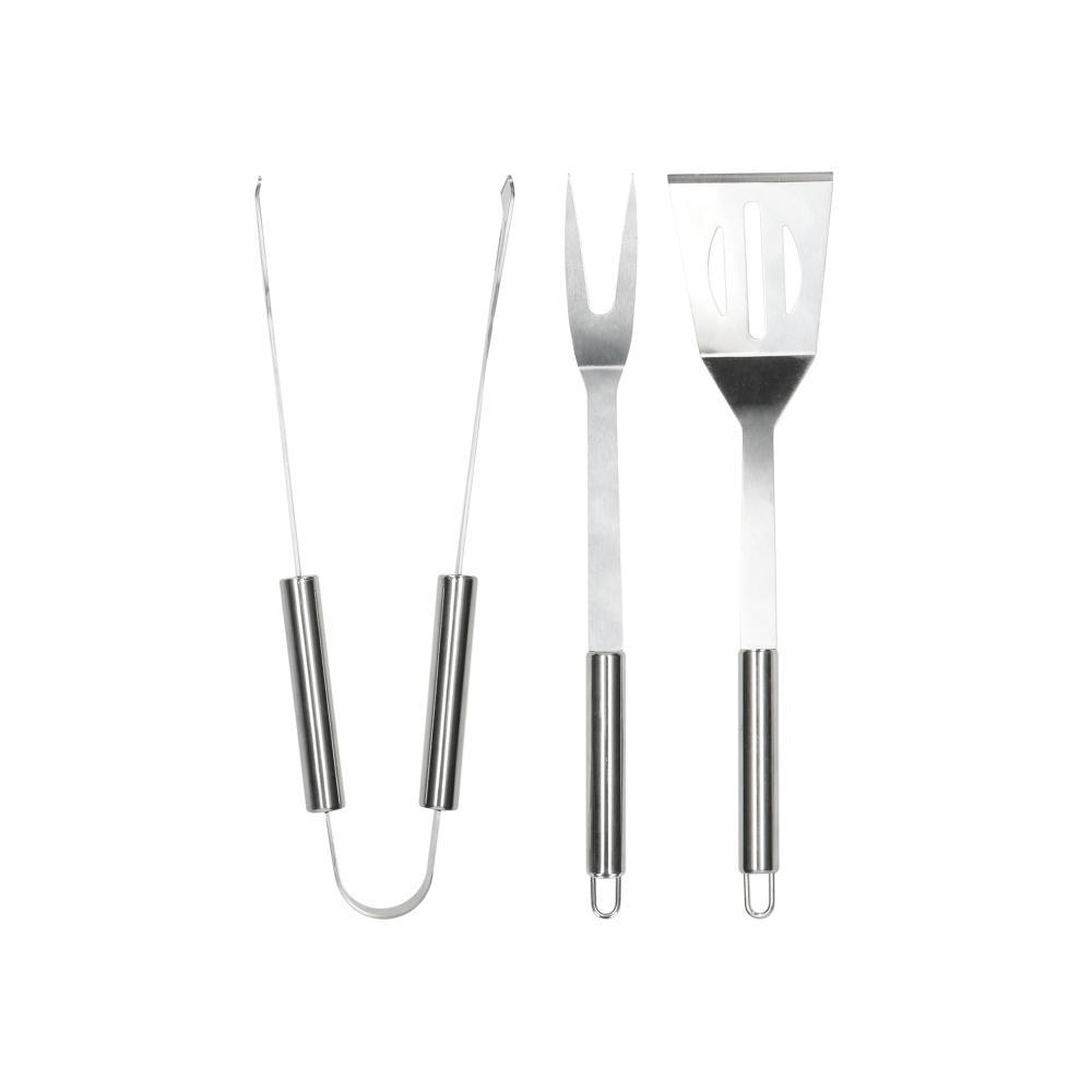 Parfait pour les professionnels du barbecue et les organisateurs d'événements, cet ensemble en acier inoxydable haut de gamme inclut une pince à grillades robuste, une fourchette précise et une spatule polyvalente. Tout est rangé dans un sac de transport pratique avec poignées ergonomiques pour une mobilité optimale.