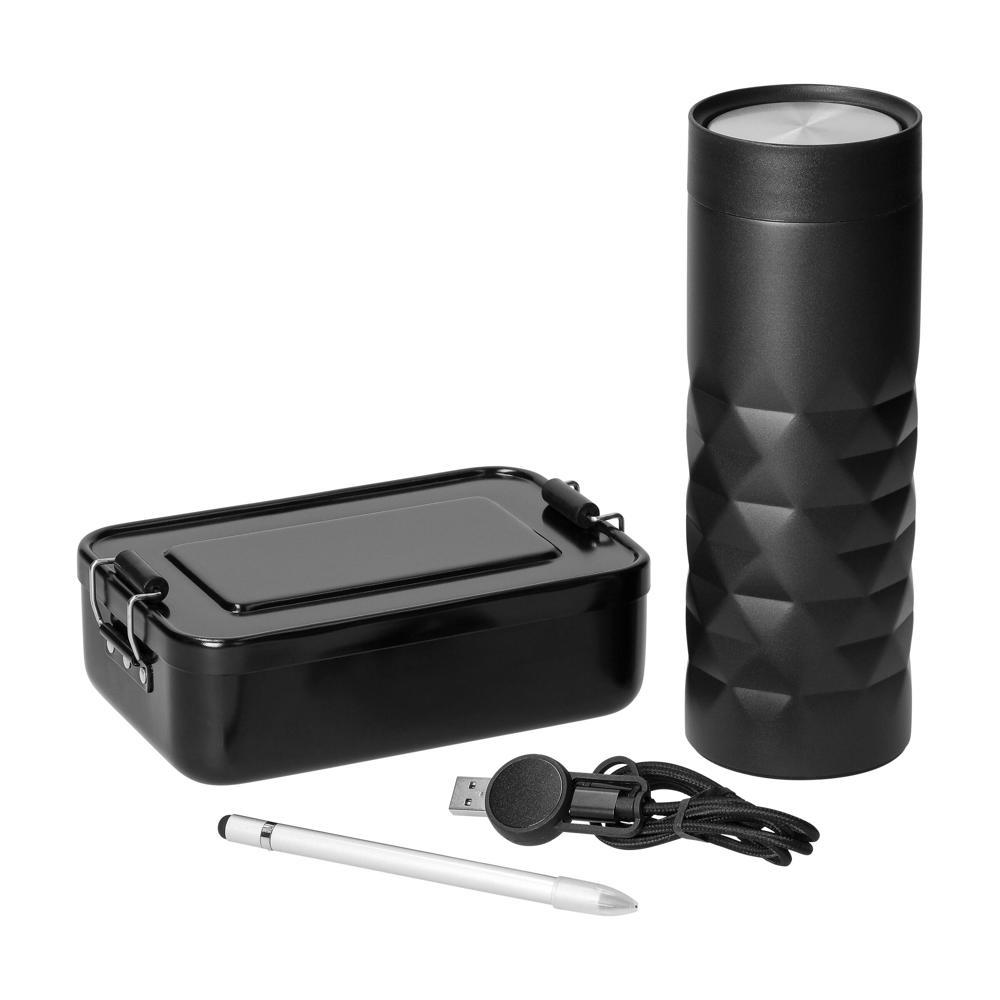 Découvrez notre Kit d'embarquement 1, un ensemble idéal pour personnaliser avec votre logo et marquer les esprits lors d'événements ou de campagnes marketing. Ce kit réunit un mug isotherme « Diamond 360 » pour conserver boissons chaudes ou froides, une boîte de conservation « Metallic » pratique pour repas nomades, un stylo en aluminium « Inkless » innovant sans encre pour notes fluides, et un câble de recharge rapide « Flexi » résistant et flexible.