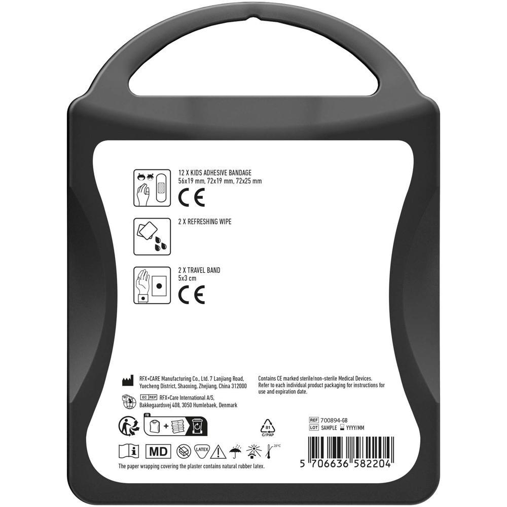 Découvrez l'ensemble de voyage pour enfant mykit, le compagnon idéal pour les petits voyageurs. Ce kit compact contient tout le nécessaire pour les soins de base : 12 pansements pour enfants, 2 lingettes rafraîchissantes et 2 bracelets de voyage anti-nausée pour prévenir les malaises liés aux déplacements.