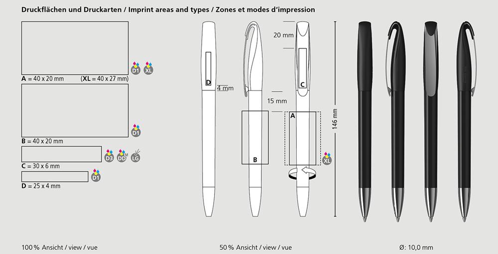 - Qualité durable : Pointe en laiton nickelé, clip en acier à ressort nickelé et tubes de recharge en polypropylène recyclé (rPP) pour une longévité accrue.