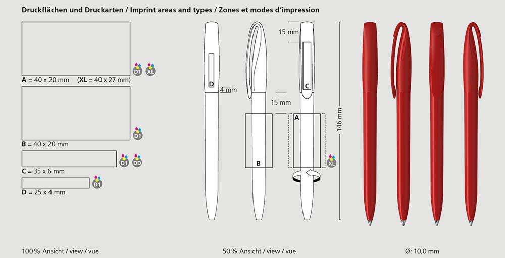 Équipé d'une mine Silktech L à encre bleue ou noire d'une longueur d'écriture exceptionnelle (3 000 m), il offre une écriture soyeuse et durable. Les tubes de recharge en polypropylène recyclé (rPP) soulignent votre engagement écologique, renforçant l'image responsable de votre marque auprès de vos partenaires et clients.