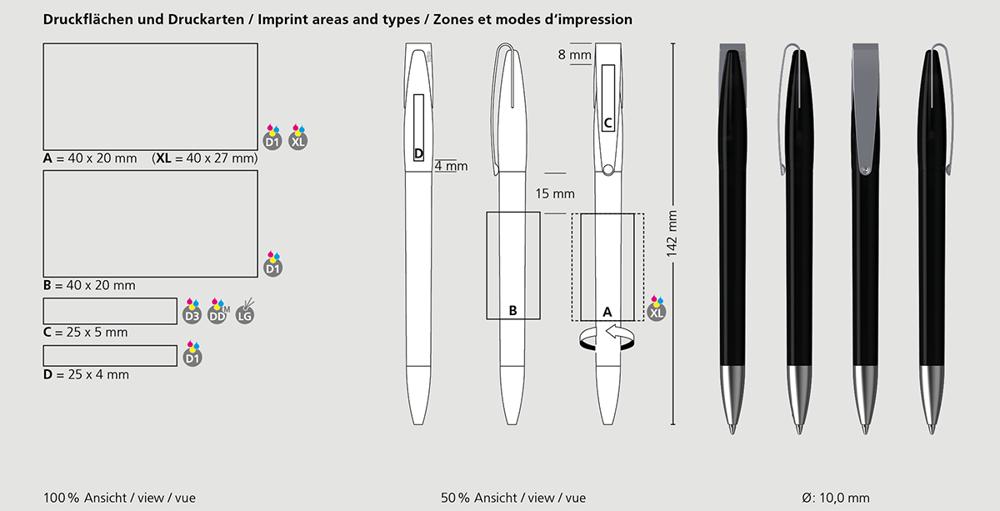 Personnalisez-le facilement avec votre logo pour un impact visuel maximal lors de salons, congrès ou cadeaux clients. Équipé d'une mine Silktech L d'une écriture fluide sur 3 000 mètres (bleu ou noir), il garantit une utilisation prolongée et une satisfaction optimale de vos destinataires. Choisissez parmi de multiples combinaisons pour un stylo publicitaire unique qui renforce votre visibilité et fidélise vos prospects.