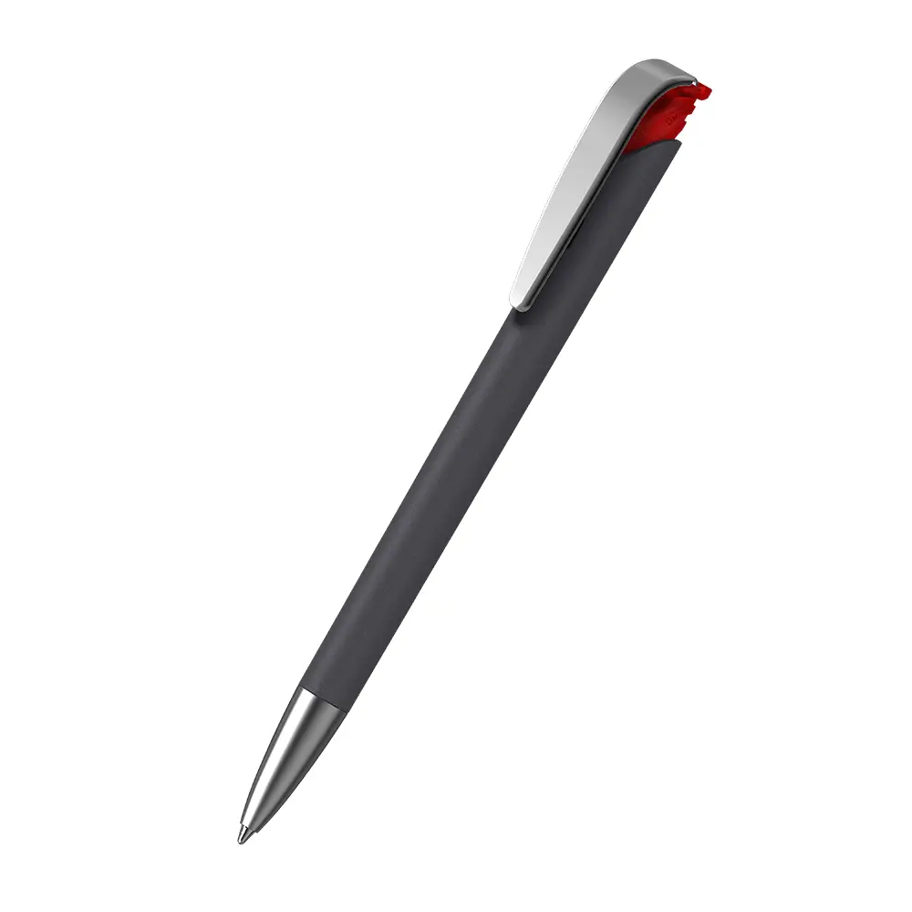 - Matériaux de qualité : Corps en plastique laqué avec softgrip pour une adhérence agréable, poussoir en plastique givré, clip en acier à ressort chromé mat, et pointe en laiton chromé pour une précision accrue.