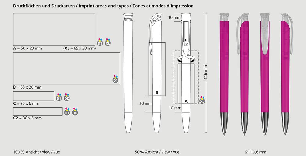 Équipé d'une mine Silktech L (3 000 m d'écriture) en bleu ou noir, ce stylo offre une écriture fluide et fiable, avec des options premium disponibles pour une performance accrue. Sa conception rétractable facilite l'utilisation quotidienne et renforce l'image professionnelle de votre marque.