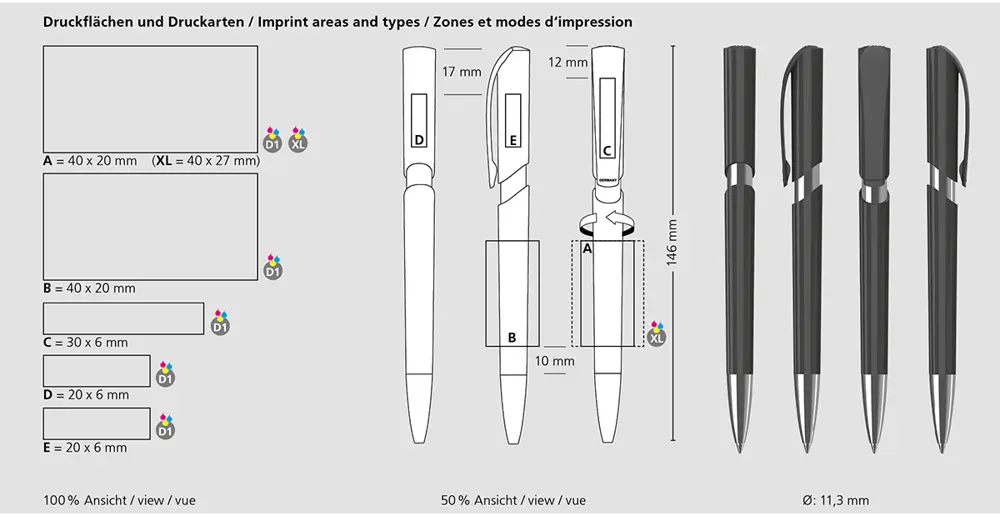 Compact (147 mm de long, Ø 11,1 mm), il s'adapte à tous les usages : événements, cadeaux d'entreprise ou goodies publicitaires. Boostez votre visibilité avec ce stylo fiable qui allie style professionnel et praticité quotidienne, favorisant une fidélisation efficace de votre audience.