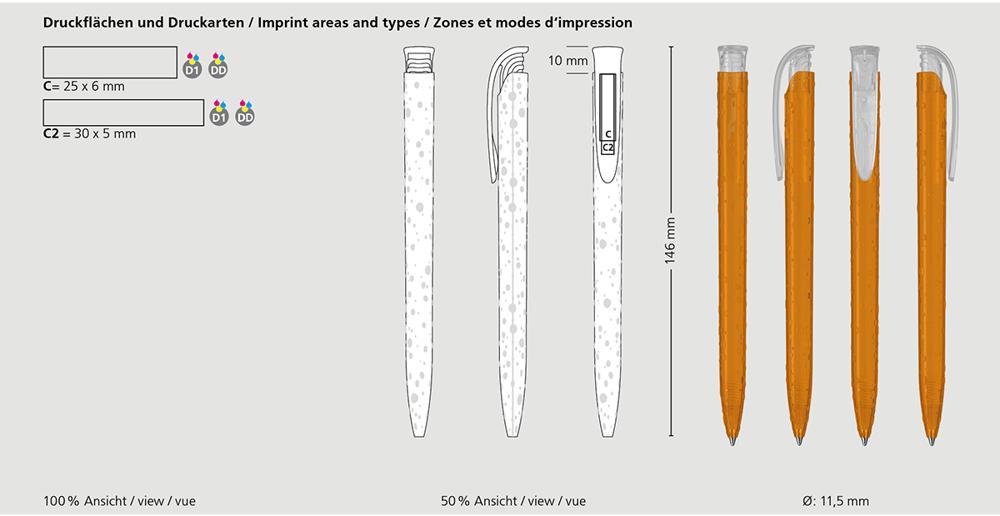 Équipé d'une mine Silktech L d'une écriture longue durée, il garantit une qualité d'impression supérieure, bleu ou noir, pour un outil publicitaire fiable et mémorable.