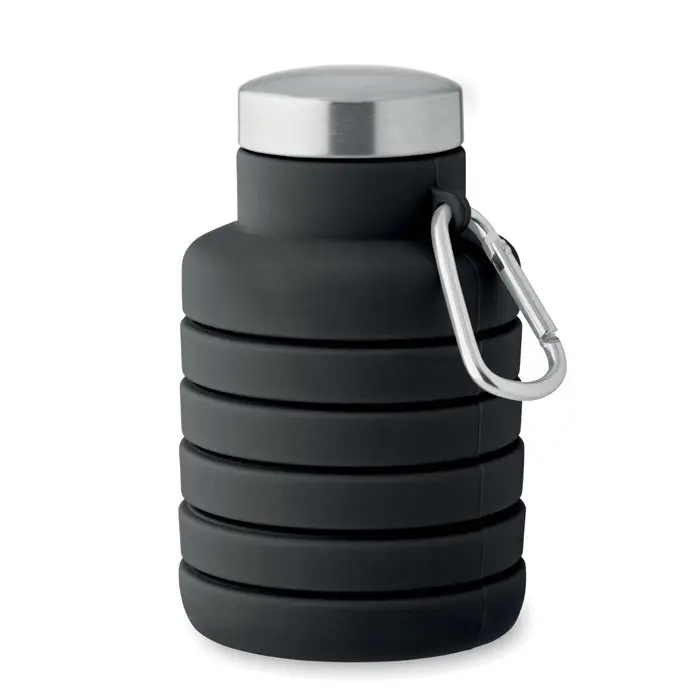 Découvrez notre bouteille pliable de 500 ml, idéale pour les campagnes marketing et les événements professionnels. Fabriquée en silicone flexible avec un couvercle en acier inoxydable et un mousqueton en aluminium pratique pour l'attacher à un sac ou une ceinture. Ce mousqueton est conçu pour un usage quotidien et non pour des activités sportives intenses comme l'escalade.