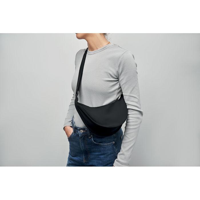 Découvrez cette sacoche cross body en forme de demi-lune, fabriquée en oxford 400D robuste avec doublure en RPET 210D recyclé. Elle dispose d'une poche principale zippée et de 2 poches intérieures pour un rangement organisé.