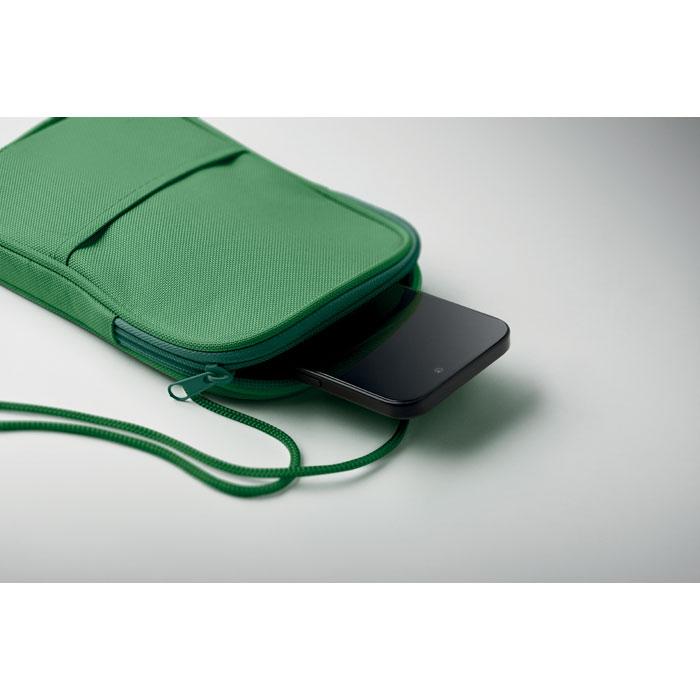 Dotée d'une sangle en cordon réglable pour un port bandoulière confortable, cette pochette de voyage transversale RPET est parfaite pour transporter cartes de visite, badges, clés ou petits essentiels lors de salons professionnels, foires ou déplacements d'affaires.