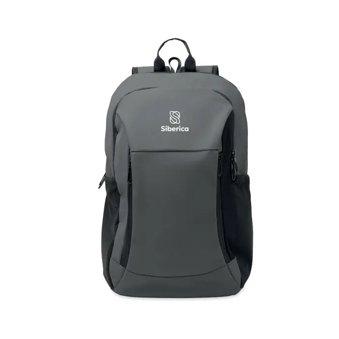 Le compartiment principal zippé et caché protège efficacement votre ordinateur, tandis que la poche frontale zippée, les deux poches latérales zippées et les deux poches en maille élastique assurent un rangement pratique pour accessoires et documents. La doublure en RPET 210D, issue de matériaux recyclés, souligne votre engagement durable, renforçant l'image éco-responsable de votre marque.