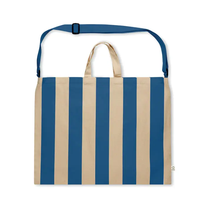 Découvrez ce sac de plage xl spacieux, idéal pour vos campagnes marketing et événements d'entreprise. Fabriqué en coton recyclé (80 %) et polyester recyclé (20 %) de 280 gr/m², il allie durabilité et style rayé intemporel. Équipé d'une poche intérieure pratique, de poignées courtes et d'une bandoulière réglable large, il offre un confort optimal pour transporter affaires de plage ou goodies promotionnels.