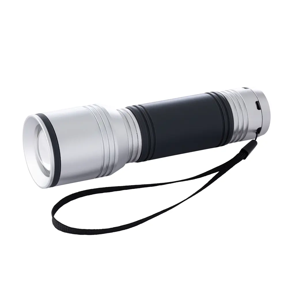 Découvrez cette lampe de poche en aluminium, idéale pour les professionnels en quête d'un outil fiable et polyvalent. Conçue pour une utilisation quotidienne ou événementielle, elle offre une puissance de 700 lumens grâce à une LED OSRAM de haute qualité, garantissant une illumination blanche intense et précise.