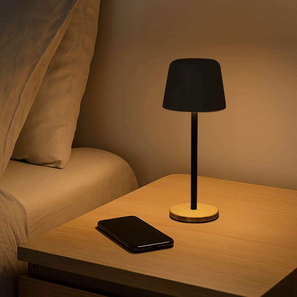 Parfaite comme relation-geschenk personnalisable avec votre logo, cette lampe renforce la visibilité de votre marque auprès de vos clients. Son pied en bambou écologique allie style moderne et durabilité, tandis que sa batterie intégrée de 1 200 mAh offre jusqu'à 6 heures d'autonomie, idéale pour des présentations prolongées ou des soirées networking.