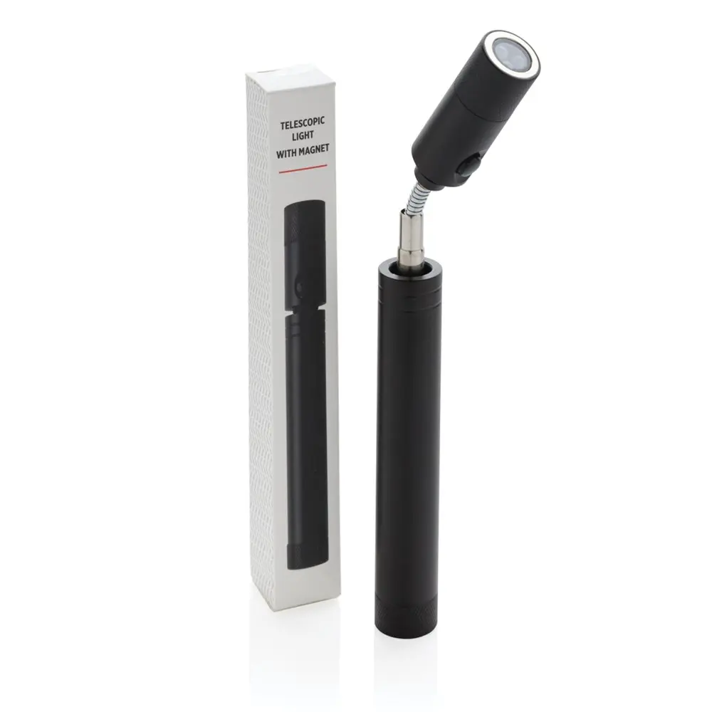 Découvrez notre lampe télescopique avec aimant, idéale pour les entreprises cherchant des outils promotionnels pratiques et personnalisables. Fabriquée en aluminium robuste, elle s'étend de 17 à 58 cm pour éclairer les zones difficiles d'accès, avec une tête pivotante ajustable dans toutes les directions. Équipée de trois LED puissantes, elle se fixe facilement sur toute surface métallique, offrant un éclairage optimal sans mains libres. Parfaite pour les événements, les chantiers ou comme cadeau client, elle renforce votre marque grâce à une impression logo personnalisée. Compacte et polyvalente, elle booste la visibilité de votre entreprise tout en facilitant le quotidien de vos partenaires. Inclut des piles pour une utilisation immédiate.