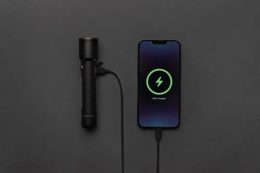 Équipée d'une LED Cree™ puissante de 10 W produisant jusqu'à 800 lumens, cette torche offre un faisceau lumineux atteignant 500 mètres. Son indice de protection IPX4 la rend résistante aux éclaboussures et aux intempéries, idéale pour une utilisation extérieure. La batterie Li-ion de 2000 mAh assure jusqu'à 8 heures d'autonomie en mode continu. Rechargez-la facilement via USB-C avec le câble inclus, certifié RCS. De plus, elle fonctionne comme une powerbank, permettant de recharger vos appareils mobiles via son port Type-C (sortie 5 V).