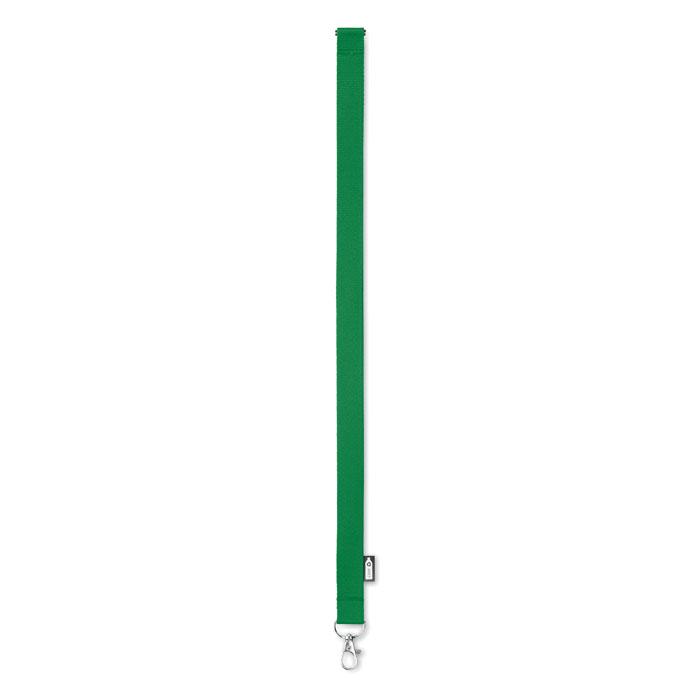 Découvrez notre lanyard en RPET, un accessoire écologique et durable idéal pour vos campagnes marketing et événements. Fabriqué à partir de polyester recyclé, il mesure 20 mm de largeur et est équipé d'un crochet en métal avec système de sécurité pour une utilisation optimale.