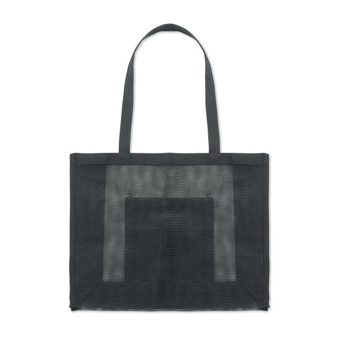 Découvrez ce sac shopping en maille RPET et 210D RPET, idéal pour vos campagnes promotionnelles. Doté de poignées courtes renforcées et d'une grande poche frontale ouverte, il offre une capacité de 20 L et supporte jusqu'à 10 kg de charge.