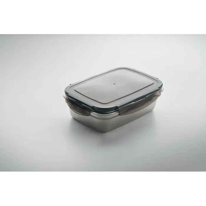 Découvrez la boîte à lunch LOX de 850 ml, idéale pour vos campagnes marketing et événements d'entreprise. Fabriquée en acier inoxydable recyclé avec un couvercle en PP et une fermeture à clip sur quatre côtés, elle offre une étanchéité parfaite pour transporter repas et snacks en toute sécurité.