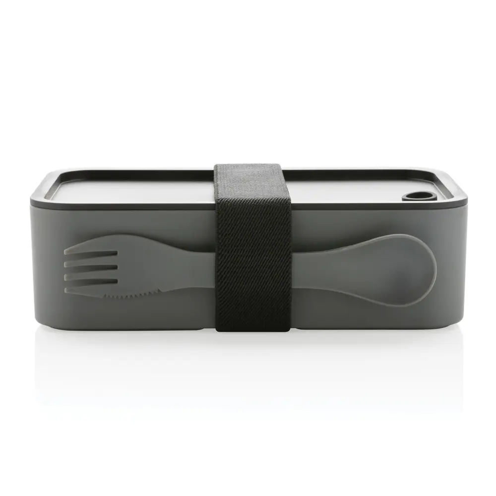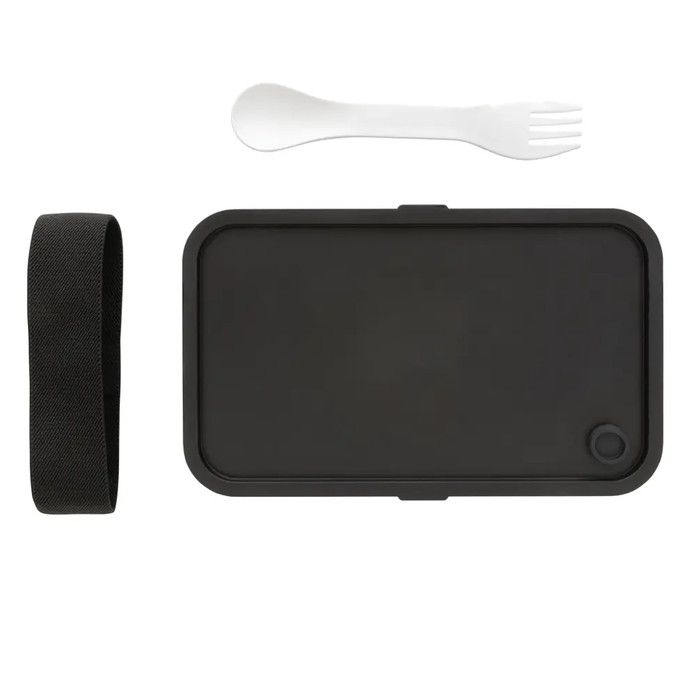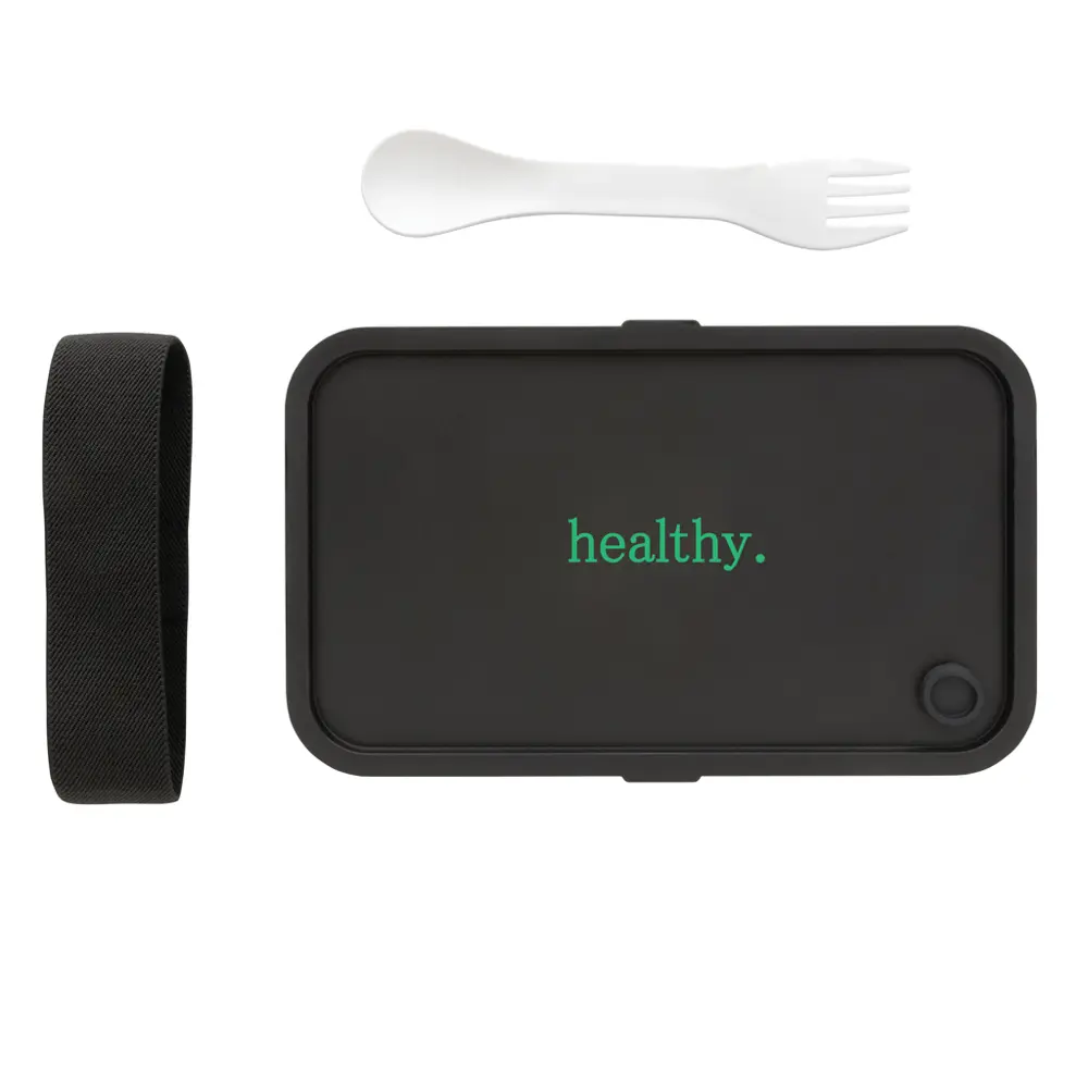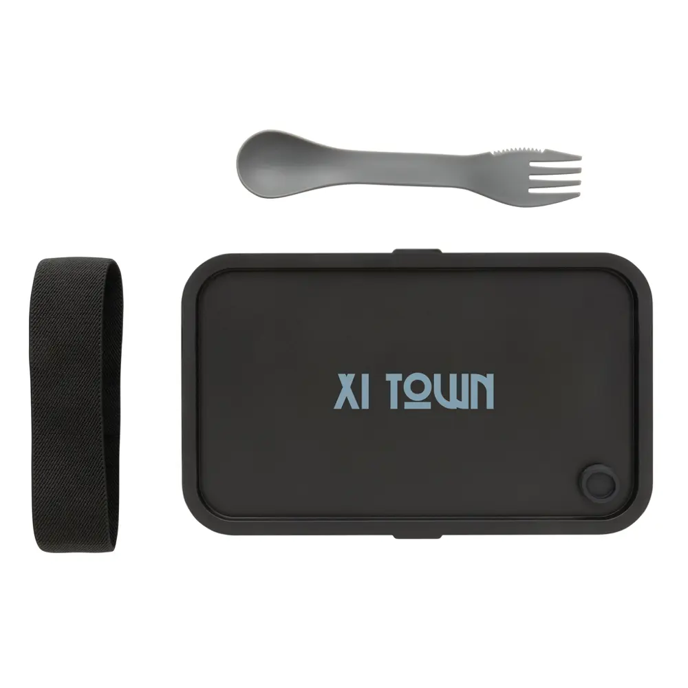 Découvrez notre lunch box élégante de 0,8 litre en polypropylène recyclé à 93 %, certifiée GRS pour une chaîne d'approvisionnement responsable. Parfaite pour un mode de vie sain, elle accueille facilement sandwiches, salades et plus, avec une cuillère-fourchette pratique et une sangle élastique pour un transport sécurisé. Facile à nettoyer, sans BPA et conforme aux normes de sécurité alimentaire, elle incarne l'engagement écologique de votre marque.
