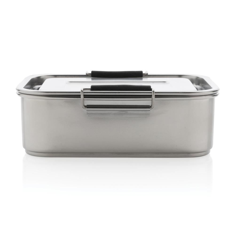 Offrez à vos clients un cadeau promotionnel écologique et durable avec cette boîte à lunch de 0,8 litre en acier inoxydable recyclé à 86 %. Étanchéité parfaite grâce à ses deux fermetures à clip, elle conserve vos repas préférés frais et savoureux pendant des heures.