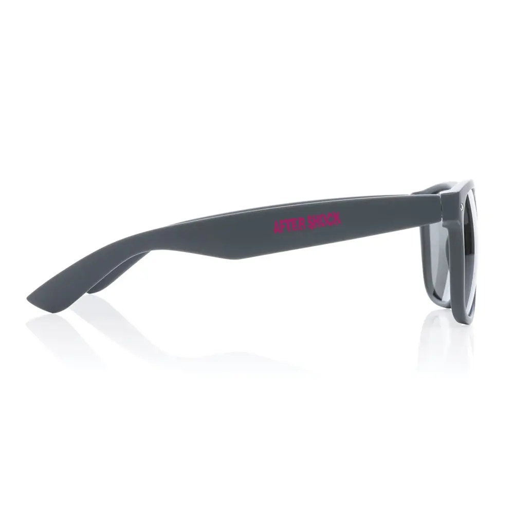 Découvrez nos lunettes de soleil personnalisables en PC recyclé, certifiées GRS pour une chaîne d'approvisionnement 100 % traçable à partir de matériaux recyclés. Avec 65 % de contenu recyclé basé sur le poids total, ces lunettes incarnent l'engagement écologique de votre marque. Les verres en acrylique offrent une protection UV 400 et une catégorie 3, garantissant confort et sécurité.