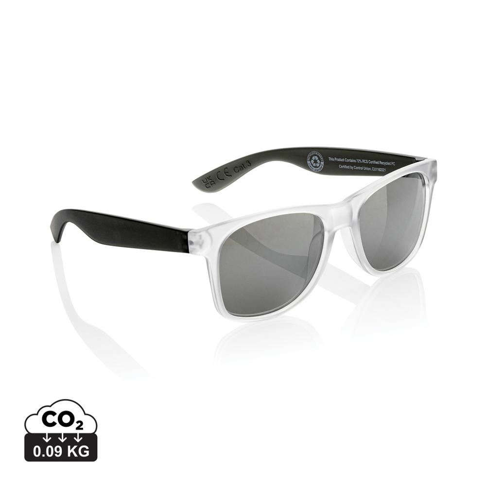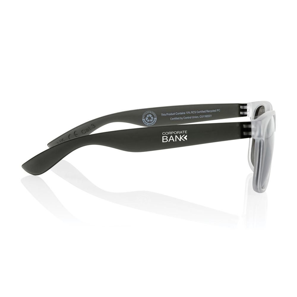 Offrez des lunettes de soleil éco-responsables idéales pour vos campagnes marketing et événements. Fabriquées avec une monture en PC transparent recyclé certifié RCS, elles contiennent 72 % de contenu recyclé sur la base du poids total. La certification RCS assure une chaîne d'approvisionnement traçable et certifiée pour les matériaux recyclés.