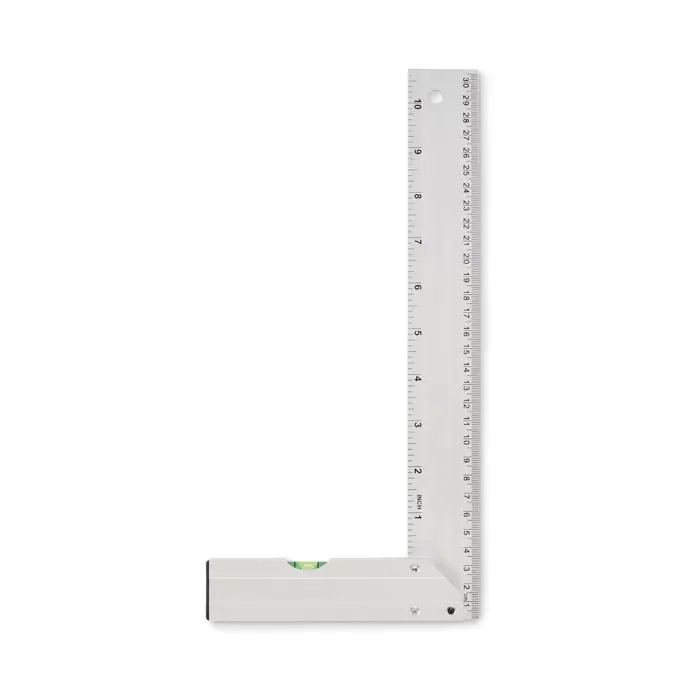 Découvrez l'équerrre multifonction MEJURE en aluminium de 30 cm, un outil essentiel pour vos événements professionnels et actions marketing. Fabriquée en aluminium robuste, elle combine une équerre précise, une règle graduée de 30 cm et un niveau à bulle intégré, offrant polyvalence pour mesures et alignements parfaits.