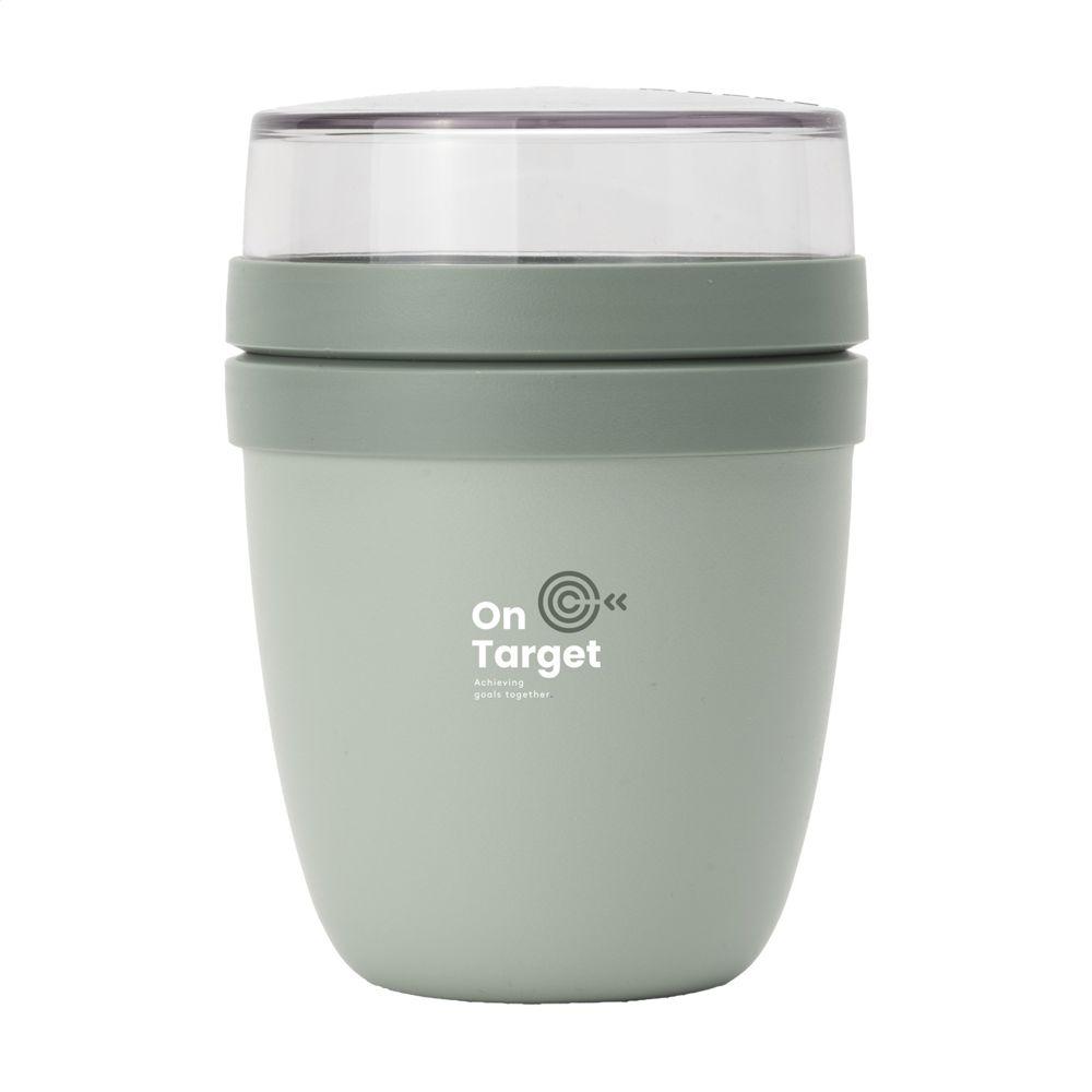 Le Mepal Lunchpot Ellipse 300 ml est le récipient à aliments idéal pour les entreprises souhaitant offrir un cadeau promotionnel personnalisable avec logo. Doté de deux compartiments séparables par un simple mouvement de torsion, chacun fermé par son propre couvercle étanche, il évite tout mélange intempestif et garde vos repas frais et organisés.