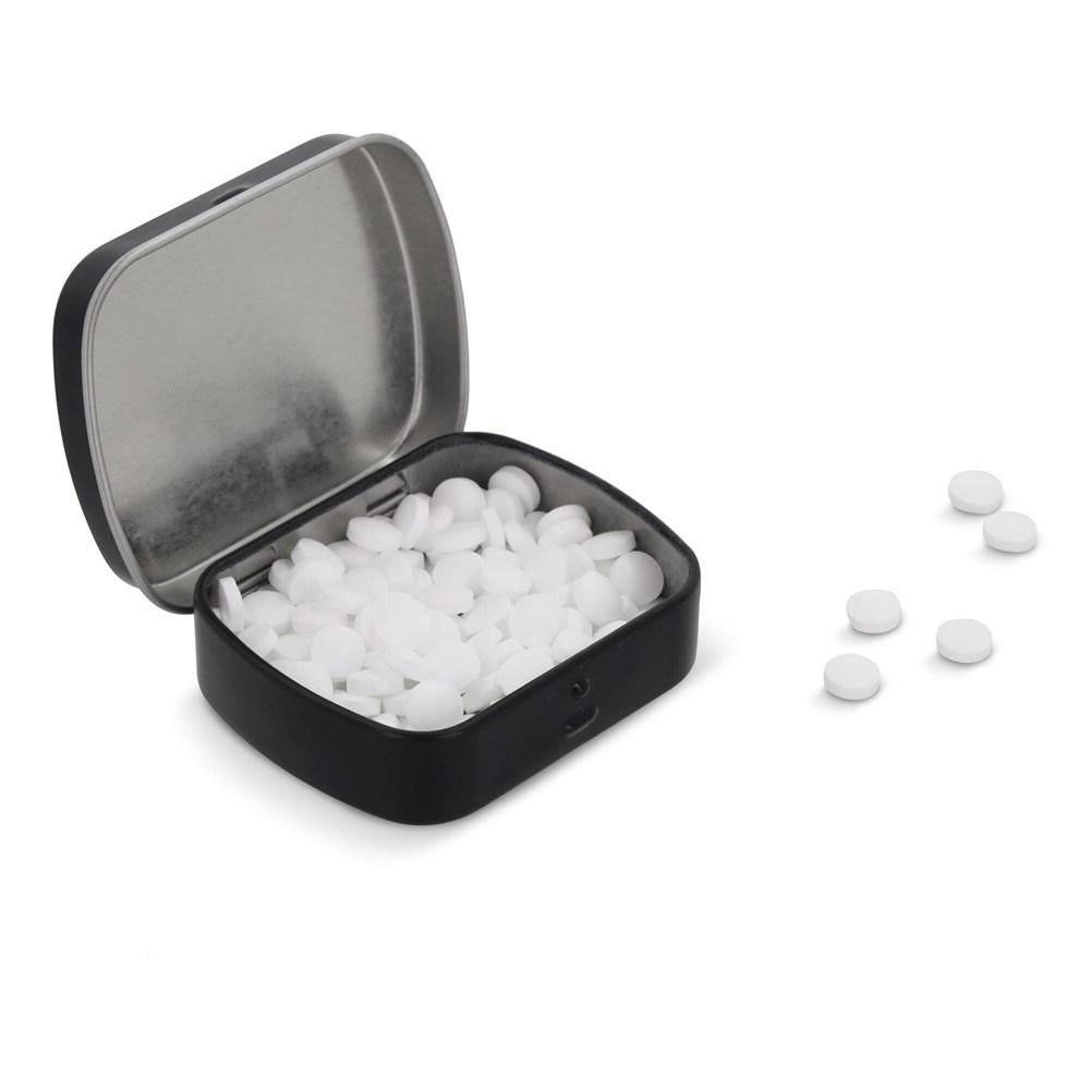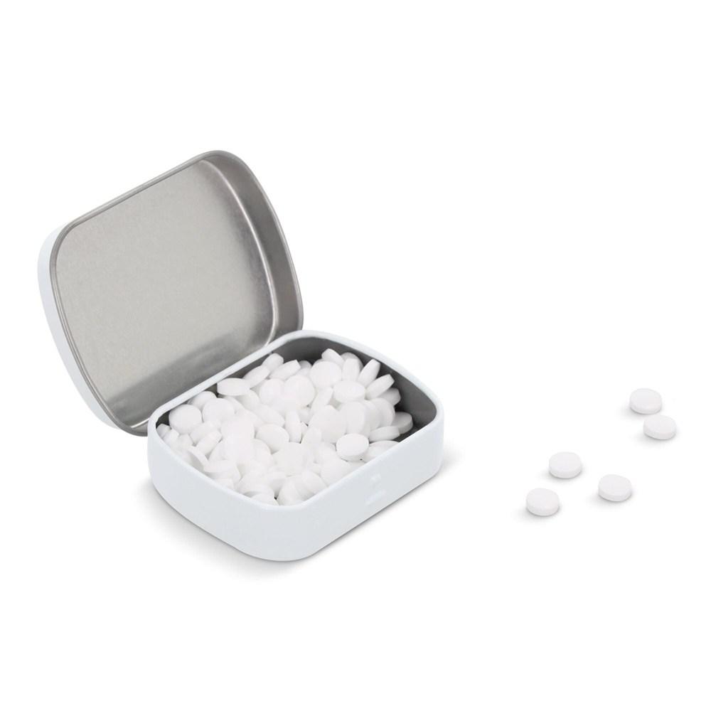 Découvrez la mini-boîte de menthe en fer-blanc, l'accessoire promotionnel idéal pour vos événements et campagnes marketing. Ces menthes sans sucre offrent une fraîcheur intense et durable, parfaites pour un cadeau relationnel personnalisé avec votre logo.