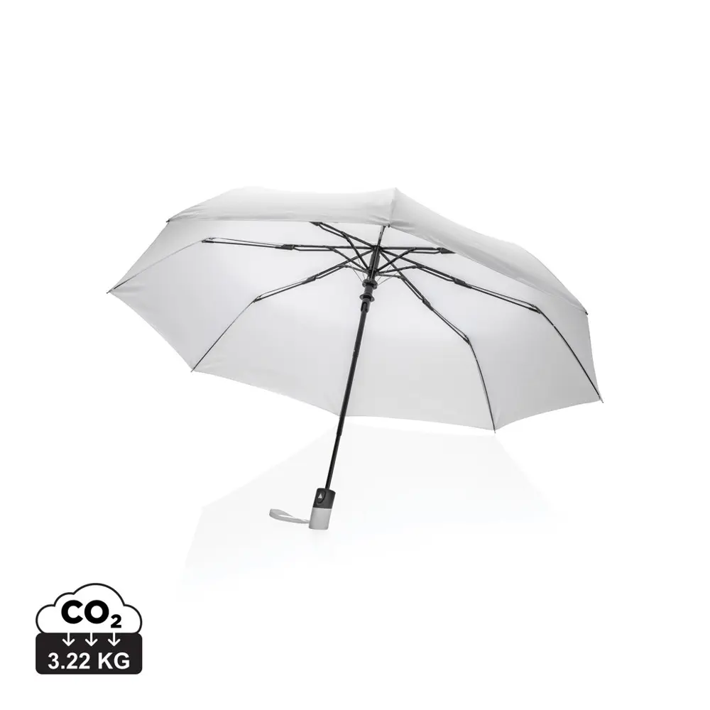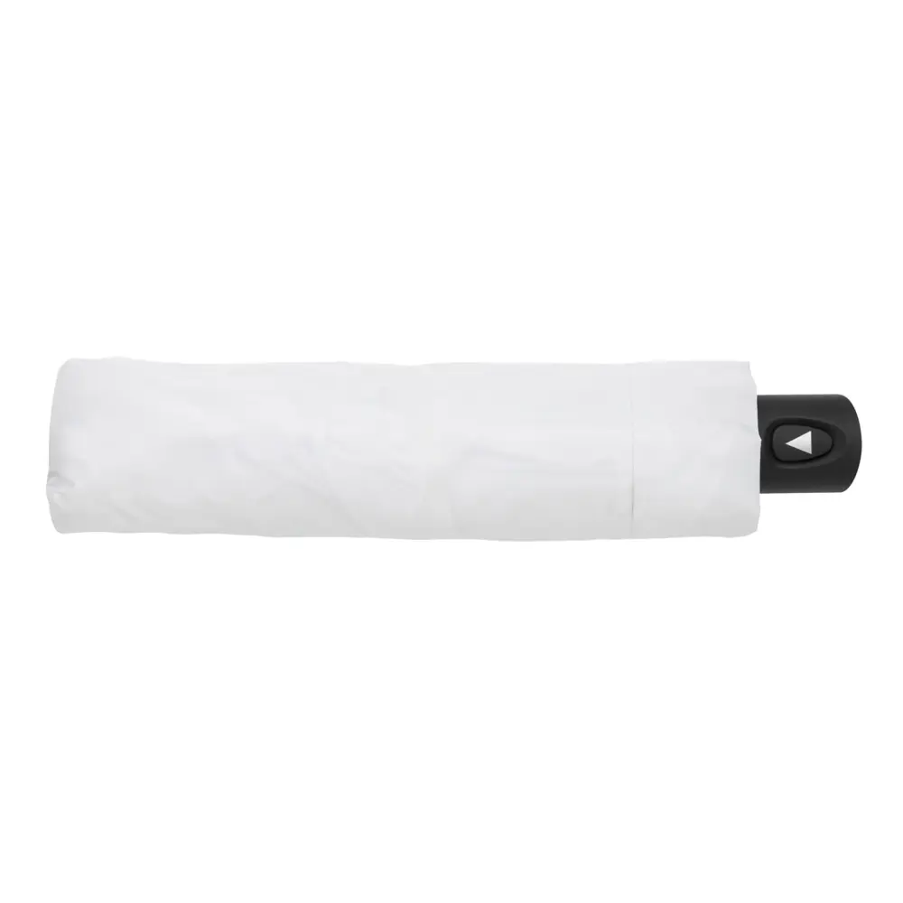 Découvrez le Mini Parapluie Automatique Mipa, un outil promotionnel idéal pour vos événements et campagnes marketing. Avec son ouverture automatique en un simple clic et sa fermeture manuelle, ce parapluie compact de 98 cm de diamètre s'intègre parfaitement dans un sac à main. Fabriqué à partir de 7,7 bouteilles PET recyclées de 500 ml, il utilise la technologie AWARE™ et la blockchain pour certifier son impact environnemental authentique, réduisant la consommation d'eau par rapport aux fibres conventionnelles.