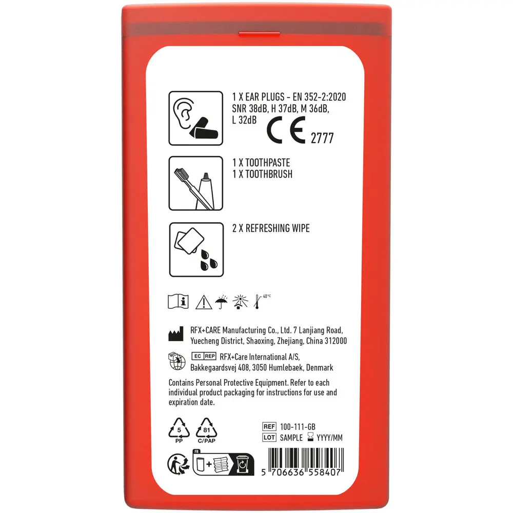 Parfait pour les entreprises et organisateurs d'événements, ce kit personnalisable avec votre logo sur l'étiquette devient un cadeau promotionnel efficace. Distribuez-le à vos clients lors de voyages d'affaires ou d'événements pour renforcer votre marque. Produit en Europe, il offre durabilité et praticité, idéal pour booster votre visibilité marketing.