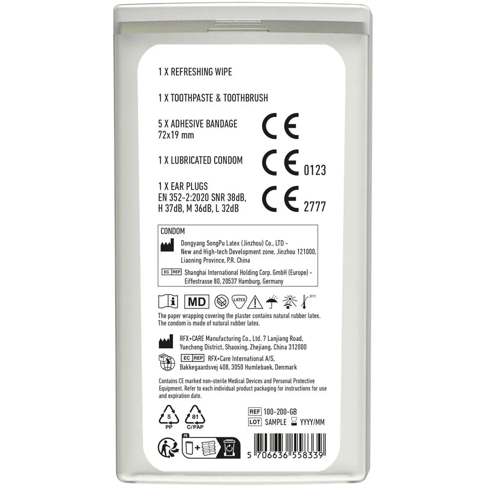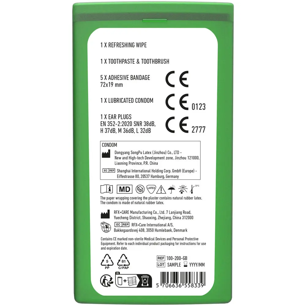Découvrez le MiniKit Festival, l'accessoire promotionnel idéal pour vos événements et festivals. Compact et pratique (4,9 x 9,7 x 2,5 cm), ce kit en plastique fabriqué en Europe s'intègre facilement dans un sac à dos, facilitant la distribution à vos clients ou participants. Il contient l'essentiel pour une nuit inoubliable : brosse à dents, dentifrice, bouchons d'oreilles, gel désinfectant, 5 pansements et 1 préservatif, tous conformes à la législation européenne.