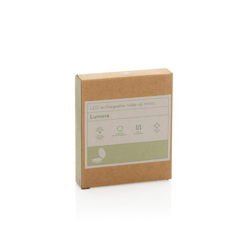 Découvrez le miroir de poche Lumora à LED, l'accessoire promotionnel idéal pour vos campagnes marketing et événements. Avec son éclairage LED réglable, ajustez la luminosité pour un maquillage précis partout, que ce soit en déplacement ou lors de retouches rapides. Le miroir grossissant offre une vision détaillée, parfait pour une routine beauté nomade.