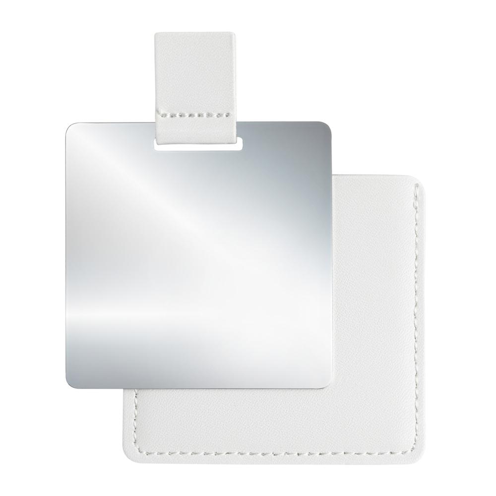 Offrez à vos clients un accessoire pratique et élégant avec ce miroir de poche incassable en acier inoxydable. Double face pour une utilisation optimale : surface polie brillante d'un côté et finition brossée de l'autre, idéal pour retoucher maquillage, coiffure ou lèvres en un instant. Rangé dans un étui protecteur en simili cuir avec coutures décoratives et languette de préhension facile, il reste compact et léger, parfait pour les goodie bags ou distributions lors d'événements.